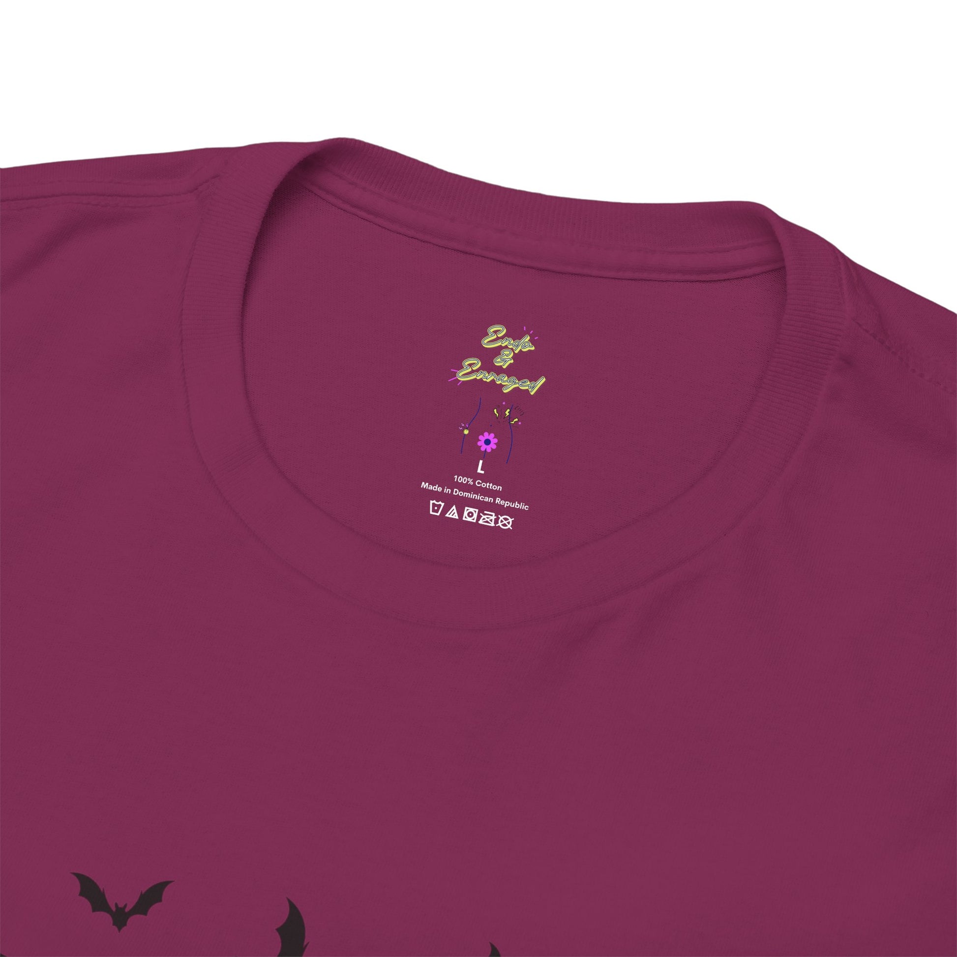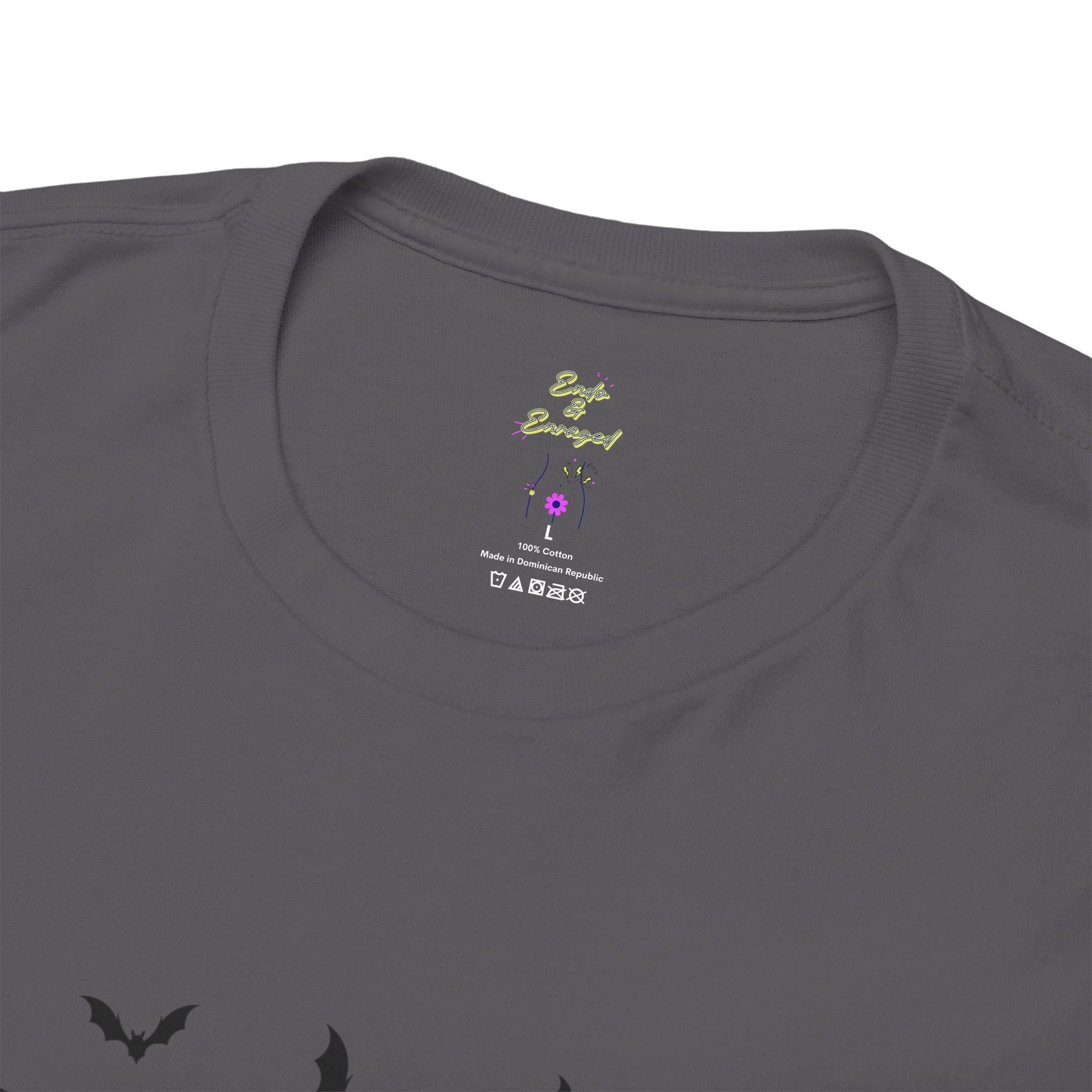 Introducing a stylish Unisex Heavy Cotton Tee that brings a fun and edgy vibe to your wardrobe. The playful design featuring bats and a catchy phrase makes it perfect for those who love to express their unique personality. This comfortable tee is ideal for casual outings, festivals, or even cozy nights in with friends, making it a versatile addition to any closet. Targeted towards adults who appreciate trendy and quirky fashion, this tee is especially relevant during Halloween, costume parties, and community events where self-expression is celebrated. It’s not just a t-shirt; it's a statement piece that invites conversation and fun!